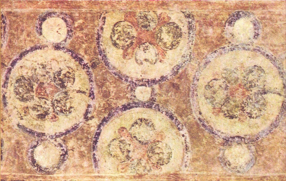 Details of frescos: Like the mosaic artisans, the names of the painters are also anonymous. Only in the apse of St. Michael's Chapel can one decipher the name "George" written in Greek on the wet plaster before the colour layer was applied. Possibly it is the name of a painter who once worked on the frescos. A great role in the mural arrangement is played by the ornamentation which richly enhances the beauty and richness of the cathedral's inner decor.