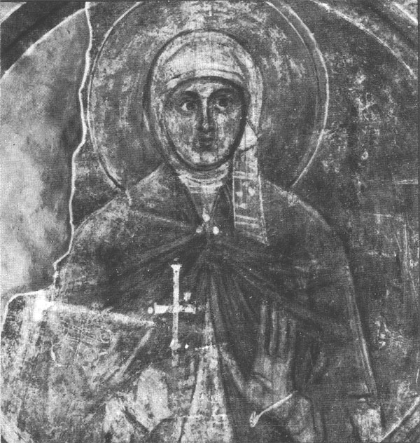 Of special value among the St. Sophia frescos is the group portrait of the family of Yaroslav the Wise. The composition had been placed on the north, west and south walls of the nave. As for the central part of the composition, originally on the west wall but which has not survived, its existence is known only from the sketch made by Abraham van Westerveldt in 1651. His sketch shows Yaroslav the Wise holding a model of St. Sophia Cathedral in his hand and Yaroslav's wife, the Princess Irene. They make for the figure of Christ near whom, in all probability, stood Prince Vladimir and Olga - the founders of Christianity in Old Rus. Behind Yaroslav and Irene, their sons and daughters form a solemn procession. From these portrayals, only four figures survive on the south wall of the nave, and two on the north. Portrait of family of Yaroslav the Wise. Details. Nave: Portrait of family of Yaroslav the Wise. Theoretical reconstruction: 1. According to V. Lazarev: on the left of Christ-Princess Irene with daughters, on the right-Yaroslav the Wise with sons 2. According to S. Vysotsky: on Christ's left - Prince Vladimir and Prince Yaroslav with sons, on his right - Princess Olga and Princess Irene with daughters 3. According to A. Poppe: on the left of Christ - Prince Yaroslav with sons and a daughter, on the right - Princess Irene with daughters The fresco suffered much damage during the restoration work made in the 19th century. Oil paintings were applied over the frescos: the full-length portraits of great martyrs on the south wall and saints on the north wall. The cleaning and restoration of these frescos took place in 1934-1935 after St. Sophia had become a state-preserved museum. Besides the frescos, on the north wall one can see three figures painted in the 18th century and the head of a saint made in the 19th century. The poor condition of this fresco composition and the absence of the original inscriptions makes it difficult to reconstruct the scenes or to determine the personages of the surviving figures. However, the four figures on the south wall are widely known as portraits of Yaroslav's daughters, though a scholarly hypothesis exists that defines them as male figures (in particular, the first two figures holding candles). The family portrait of Yaroslav the Wise in the centre of the cathedral served as confirmation of the princely autocracy. And now, looking at the figures in the portrait, we are reminded of the ties contracted between the princely house of Kiev and the largest states in Europe. Irene, the wife of Yaroslav the Wise, was a Swedish princess; Yaroslav's sons - Svyatoslav and Vsevolod - were married to Greek princesses; his daughters - Elizabeth, Anna and Anastasia - were queens of Norway, France and Hungary, respectively. The portrait of the family of Yaroslav the Wise is an Old Rus relic of monumental portrait painting.