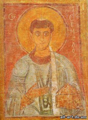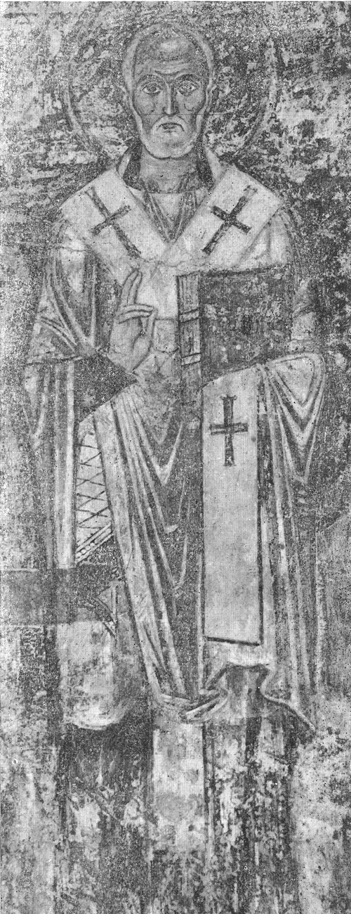 Fresco Saints. The left side: Fresco unknown Saint: Fresco St. Pankrat³y Detail: Fresco Grigor³y Theologian: Fresco unknown Saint: Fresco St. Ermilos: Fresco St. Viktor: Fresco St. Mel³ton: Fresco ²oann Baptist: Fresco unknown Saint: Fresco griffin. Detail:
