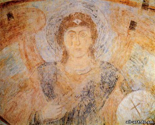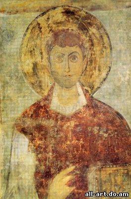 Fresco St. George Detail: Fresco Annunciation. Archangel Gabriel. Detail: