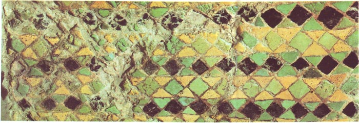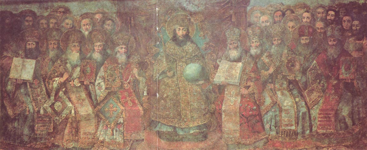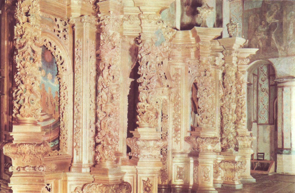 Details of the interior of the St. Sophia CathedralApart from the mosaics and frescos of the 11th century, there is a very interesting 18th-century composition in oils on the west wall of the nave called The First Oecumenical Council. The First Oecumenical Council. Have. West wall. Oil. 18fh century: Certain pieces of 11th-century decorative art are rather valuable: specifically, the stone throne of the Metropolitan encrusted with mosaics (in the chancel), and the carved ornamentation in bas-relief on the slate slabs of the loft parapets. Metropolitan's throne. 11th century. Detail: Panels on parapet of lofts. Stone carving. 11th century: The picturesque decor of the ancient interior of St. Sophia was enhanced by the beautiful mosaic floors, of which fragments may be seen on view in the transept. Mosaic floor, fragment, 11th century: The cathedral floors were repaired many times: during the excavation it was discovered that the continually added layers had raised the floor level by almost a metre. The present-day iron tiles were laid in the 19th century, replacing the mosaics. Today the floor level is the same as it was in the 11th century. However, in the chancel behind the iconostasis one may still see an exhibit of the ceramic floor belonging to the 17th century. In the 11th century, the chancel was separated from the rest of the cathedral by a low parapet of marble. The present Iconostasis was made in 1747: of delicately carved wood covered with gilding, it is an exquisite example of woodcarving and easel painting (the inset icons) by Ukrainian masters of the 18th century. Iconostasis. 18th century: |