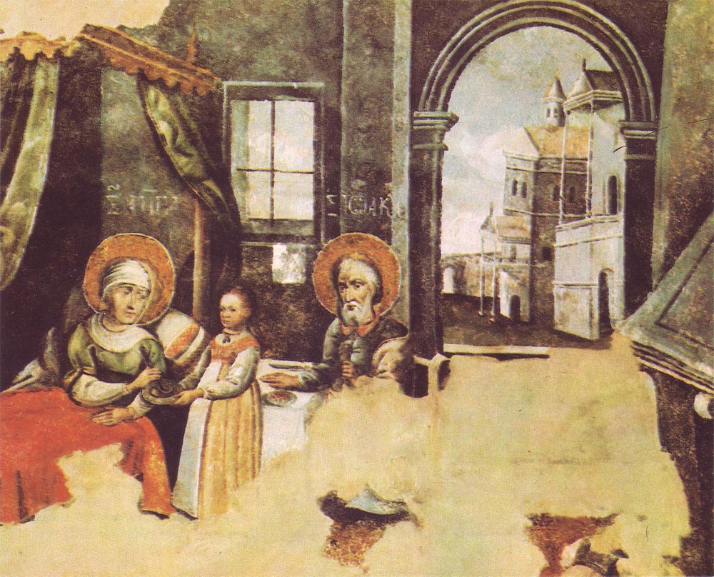 NORTH CLOISTERThe premises of the former north outer cloister permit us to delve into the history of the cathedral's construction. Excavations made in the wall masonry tell the story of the earliest architecture of the gallery and its later reconstructions. At the west end, the masonry has been exposed to show an octagonal column and the remains of a flying buttress. The reconstruction work of the 17th-18th centruies is on view also, as well as an 18th-century door embrasure. The exposed masonry and an exhibit of various building materials speak of the old building techniques employed in the construction of the cathedral. The walls of the cathedral were built of stone (granite and red quartzite) and flat bricks (the Greek plinthoi) which were 27 cmX31 cmX3.5 cm thick, the latter being laid with a mortar of slaked lime mixed with crushed burnt brick. This technique of laying brick and stone was typical of Old Rus architecture of the 10th and 11th centuries. The rows of stone were covered with the brick-lime mortar and levelled off by applying several horizontal rows of plinthoi. The layer of mortar between the rows of plinthoi was as thick as the bricks (3.5 cm). However, every other row of plinthoi was set deeper into the thickness of the wall and completely coated with the mortar which, incidentally, had properties preventing water seepage. The exterior appearance of the cathedral, therefore, was that of bands of masonry where the thin rows of plinthoi alternated with wider strips of mortar. The columns and arches in the cathedral were built only of plinthoi. The foundation rows of the cathedral were composed of rubble laid upon this lime and crushed-brick mortar (in some places the rubble was laid "dry" without the mortar). The depth of the foundations ranged from 80 cm. to 1.4 m. The domes were built up of concentric rounds of plinthoi, each top row overlapping the one beiow. And only in laying the upper part of the domes did they employ timbering built from within for support. The outside surface of the central dome was covered with specially moulded plinthoi of concave form to fit the spherical surface, in the masonry of the cathedral's vaults a method widely employed was to lighten the structural weight by inserting hollow clay jugs which, incidentally, were used in places to improve the acoustics. For instance, in the pendentives of the main cupola, the jugs were set into the masonry so that their necks faced the interior - the openings or holes prevented confusing echoes. The masonry work of the cathedral's exterior was left uncovered. The wide light-rose bands of the mortar together with the rows of orange-rose plinthoi and the dark spots of stones in the mortar formed a richly decorative and beautiful exterior. The north gallery still retains some fragments of 11th-century frescos. During the 19th century they were covered with a calcimine wash rather than oil paint and, as a result, their opulent and unique colour palette was preserved. St. Natalia. Detail.: Sf. Adrian. Detail: It was here that church prelates of the 18th-19th centuries were interred. The eastern end of this gallery, and former cloister, is of particular interest because it served as the burial place for princely families. Here there is an exhibit of the original medieval ceramic floor and fragments of frescos on the walls. On the arch before the chapel apse are two figures called The Flaming Seraphs - a rare specimen of size-colour murals made at the end of the 17th century. The Flaming Seraphs. Size-colours painting. 17th century: The remaining murals were done in oils during the twenties and thirties of the 18th century. They are valuable specimens of Ukrainian monumental painting and convey some idea of painting as a decorative art typical of the period. Nativity of the Virgin Mary. Detail. Oil. 18th century: Our review of the north outer gallery brings to a close the tour of the ground floor of St. Sophia Cathedral. Read more: |